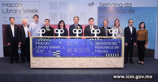 The “Macao Library Week 2017”, organized by the Macao Public Library under the Cultural Affairs Bureau (IC), the Education and Youth Affairs Bureau (DSEJ) and the Macao Library and Information Management Association (MLIMA), and co-organized by the Wu Yee Sun Library under the University of Macau, was inaugurated on 22 April, at 10:30am, at the Old Court Building. The opening ceremony was attended by the President of the Cultural Affairs Bureau, Leung Hio Ming; the Head of the Department of Public Library Management, Tang Mei Lin; the Head of the Division of Continuing Education of the Education and Youth Affairs Bureau, Kong Ngai; the Head of the Centre of Permanent Education of the Education and Youth Affairs Bureau, Cheong Kuai San; and the Director of the Macao Library and Information Management Association, Wong Kwok Keung.