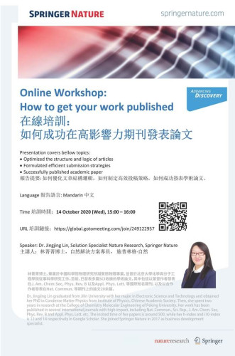 Speaker: Dr. Jingjing Lin, Solution Specialist Nature Research, Springer Nature